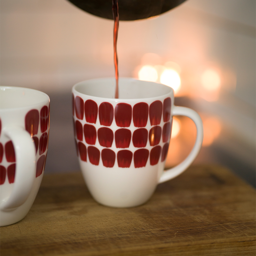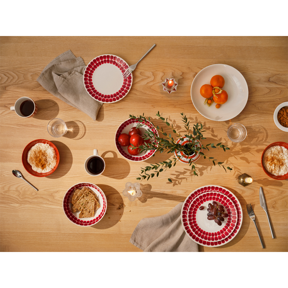 ブラシで描いたようなリズミカルな手書き風のパターン、朝から晩まで24時間使えることをコンセプトとしたモダンで機能的なデザインのトゥオキオがクリスマス&お正月の時期に活躍する赤のコレクションで今年も登場します。