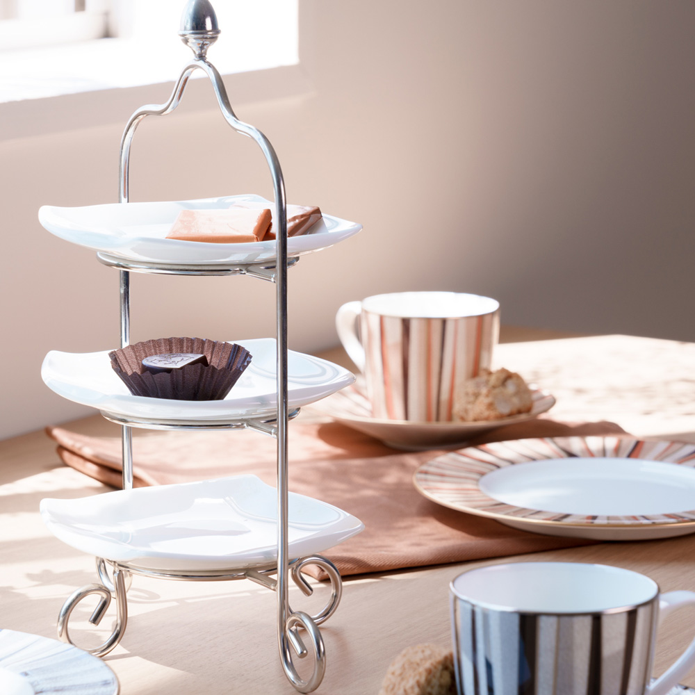 - スタイルズフォルテシリーズの11cmスクエアトレイ専用の3段プレートスタンド。