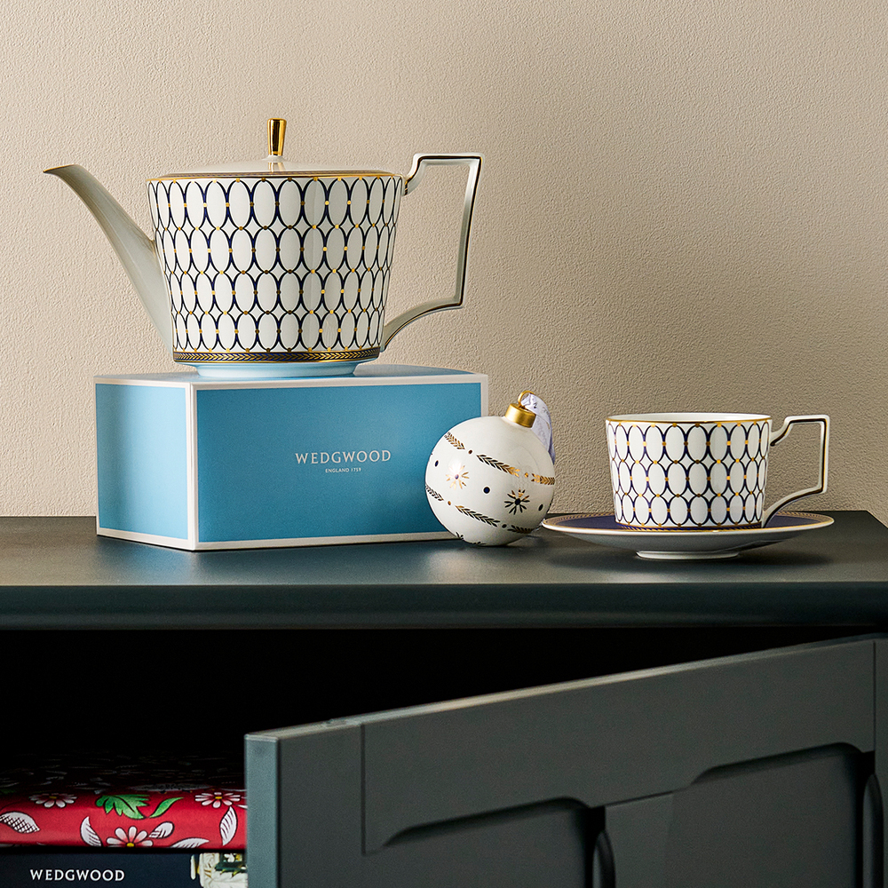 日本初登場のルネッサンスゴールドのオーナメント 。 ウェッジウッド創業時のネオ ・ クラシカルスタイルを現代風に再生したデザインからジャスパーカメオをモチーフとするオーバル 楕円 やローレル模様がアレンジされています。柄違いの2個セットです 。