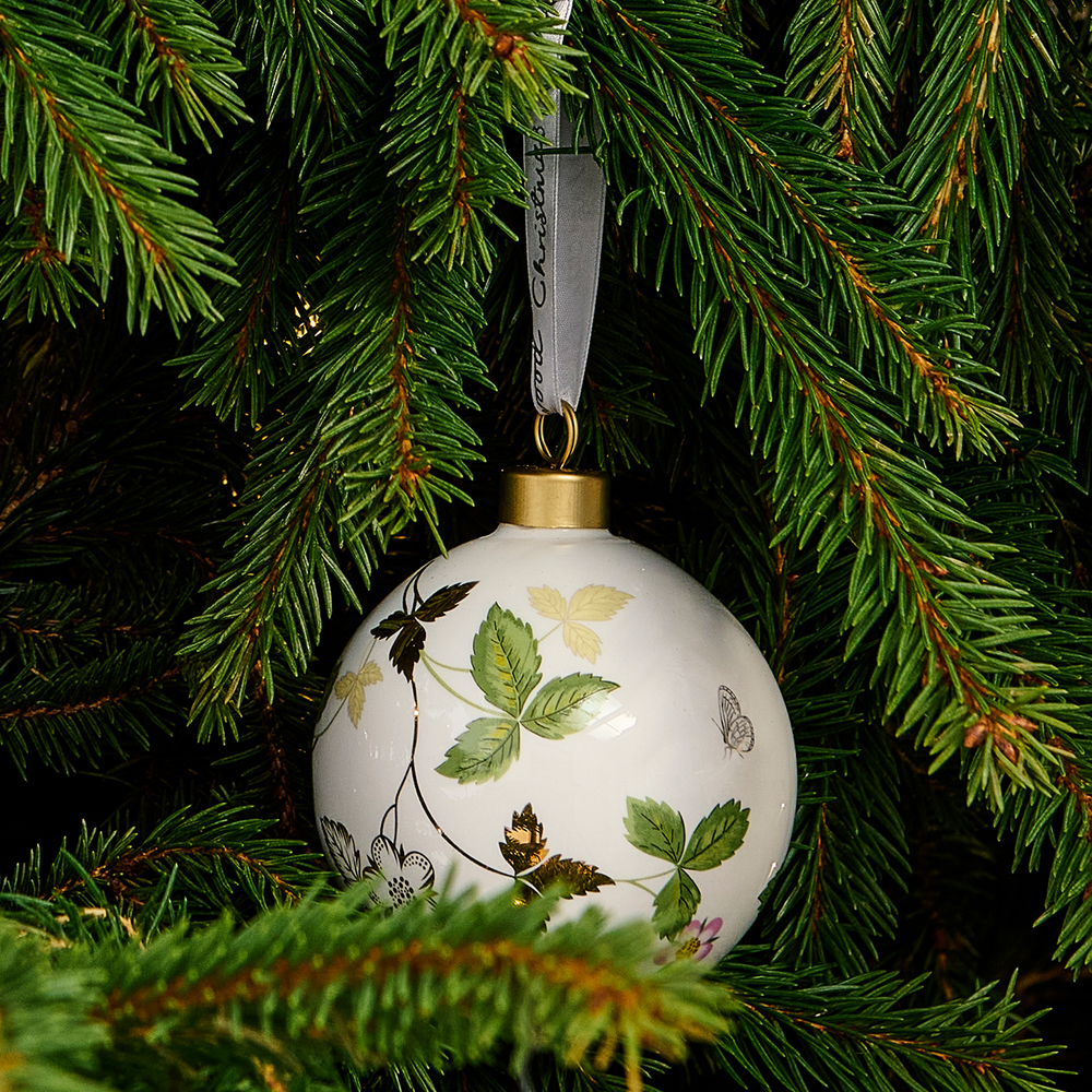 ウェッジウッドの人気パターンの一つ、ワイルドストロベリーのオーナメント。異なるパーツを切りとった、柄違いのオーナメント2個セットです。クリスマスツリーに飾っても、テーブルを飾るオーナメントとしても。